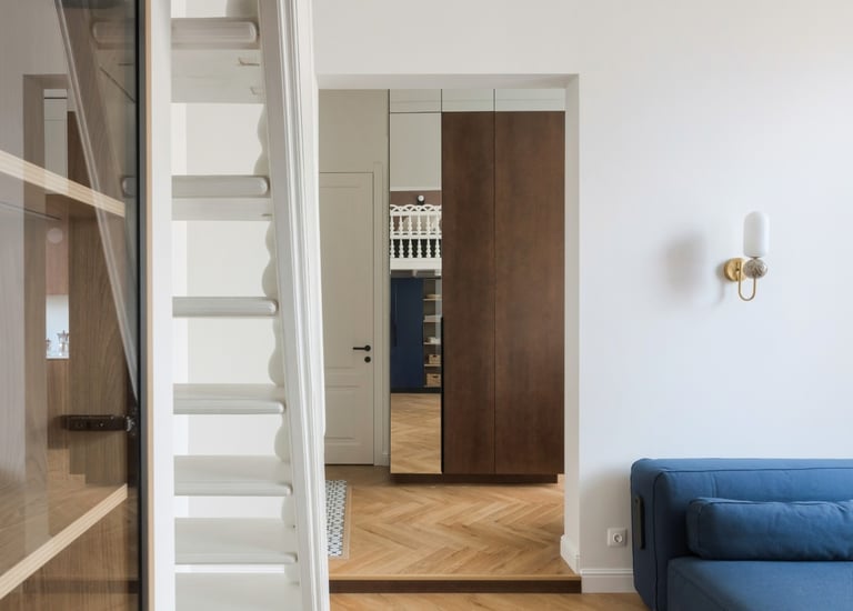 Pirmą kartą susitikus su užsakove, išgirdau mielą istoriją apie bute esančią antresolę.
